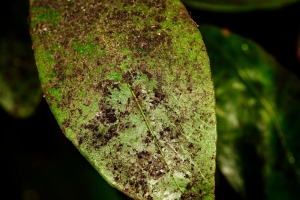 Sooty mold is a black, powdery fungus that grows on honeydew produced by scale insects and other sap-feeding pests. While sooty mold does not directly infect plant tissue, it blocks sunlight and interferes with photosynthesis.